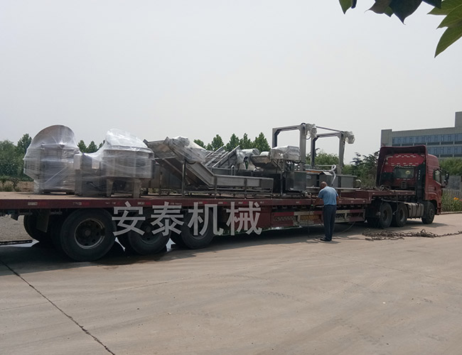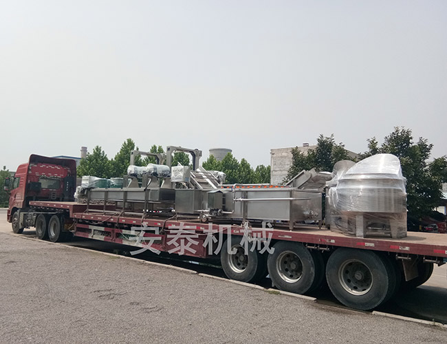 2019年7月15日真是一個艷陽高照的日子,站在外面能夠切身感受到夏日的熾熱,四川客戶定制了一套流水線設備,包括高壓氣泡清洗機、解凍機、提升機、攤涼線和自動翻筐夾層鍋,車間師傅把設備挑到辦公樓前邊,在炎熱的太陽底下打包設備,用塑料薄膜將所有設備的關鍵部位纏起來,在叉車師傅的配合下,將所有的設備裝上車,現已全部裝車完畢,靜待出發。