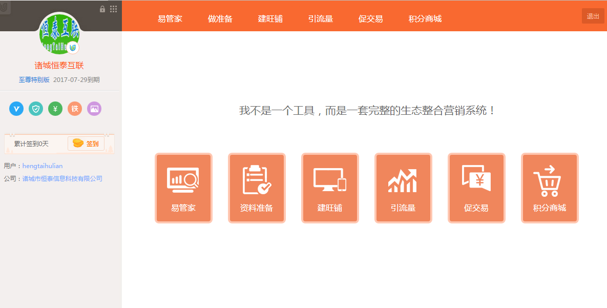 易站通首頁分兩部分,左側是個人中心,右邊是操作版面。