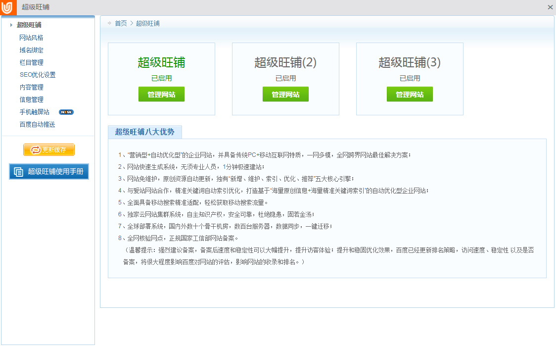 介紹頁面左側(cè)自帶“超級(jí)旺鋪使用手冊(cè)”,可參考查閱。